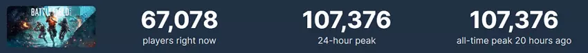 Według serwisu SteamDB, w ciągu minionej doby liczba jednocześnie grających osób przekroczyła 107 tysięcy. Takiej sieciowej Battlefield 2042 nie było od ponad dwóch lat istnienia strzelanki.