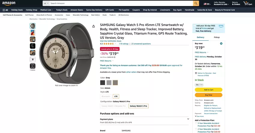 Zniżka 180 dolarów: Samsung Galaxy Watch 5 Pro c LTE dostępny na Amazon w promocyjnej cenie