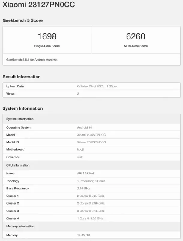 Xiaomi 14 z układem Snapdragon 8 Gen 3 przeszedł test wydajności w Geekbench 5 na kilka dni przed prezentacją