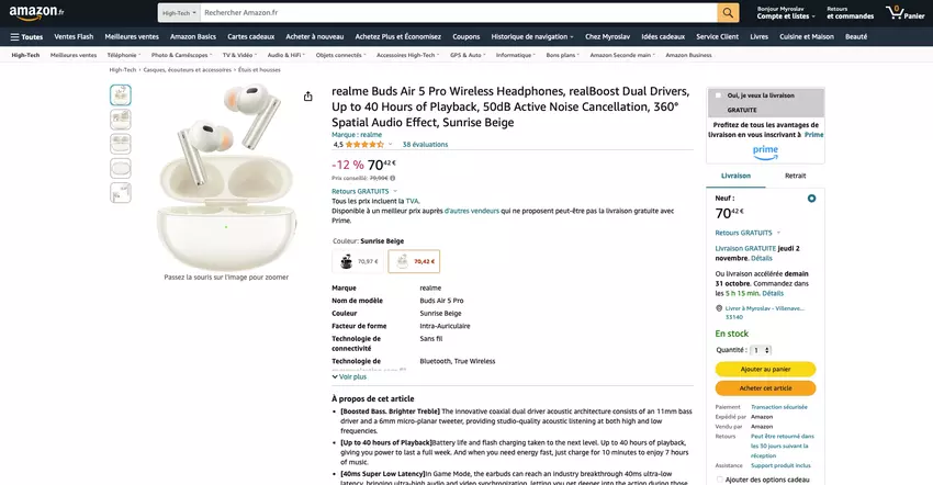12% zniżki: realme Buds Air 5 Pro z ANC i do 40 godzin autonomii w sprzedaży na Amazon w promocyjnej cenie