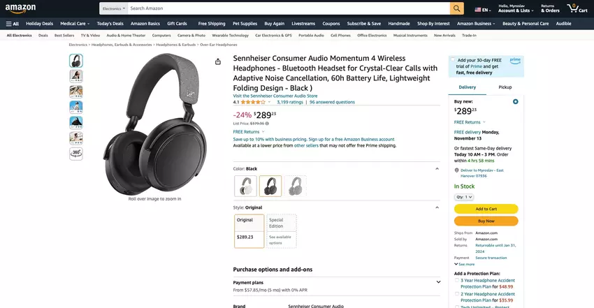 Mowa o modelu Sennheiser Momentum 4 w kolorze czarnym za $379.95 $449.95, -16%). Dostępny jest również kolor Biały, ale kosztuje on więcej - $379.95 $449.95, -16%23 USD (379 $379.95 $449.95, -16%95 USD, $379.95 $449.95, -16%).