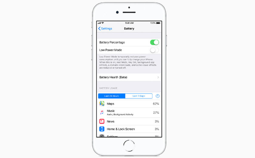 Drugi układ znany jest z wersji beta. Firma Apple pozwoliła użytkownikom wyłączyć funkcje wpływające na wydajność iPhone'a. W grudniu 2017 roku firma przyznała, że zwalnia własne smartfony, aby uzyskać większą autonomię od starych baterii. Nie wszyscy docenili ten pomysł, a firma Apple zdecydowała, że ta funkcja będzie opcjonalna. Działa na iPhone 6, 6 Plus, SE, 6s, 6s Plus, 7 i 7 Plus.