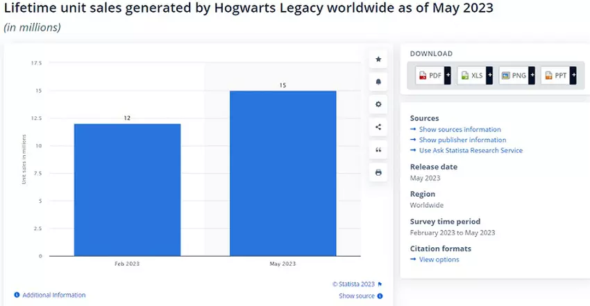 Eksperci Stat ista obliczyli, że sprzedaż Hogwarts Legacy osiągnęła 15 milionów egzemplarzy.
