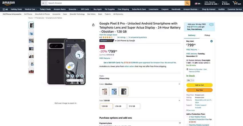 - Google Pixel 8 Pro, 128 GB - $999.00,00 $999.0000 $999.00