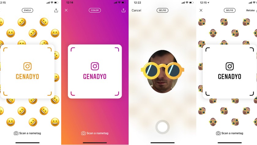 Ta funkcja nie jest jeszcze szeroko stosowana i znajduje się w fazie testowania. Użytkownik tworzy obraz ze wzorem emoji lub jego twarzą. Na środku obrazu zostanie wyświetlony sam Nametag, który powinien zostać zeskanowany.