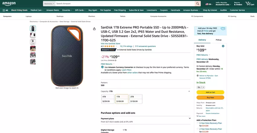 Jeśli od jakiegoś czasu chciałeś kupić przenośny dysk SSD, gg znalazło świetną opcję na wyprzedaży Amazon's Black Friday.