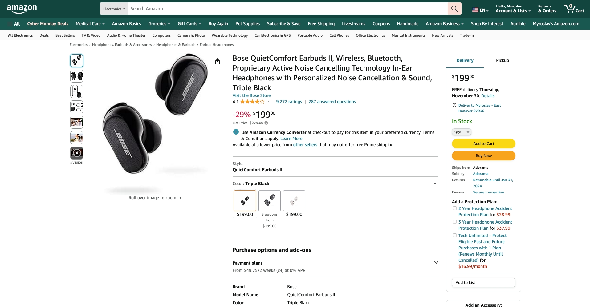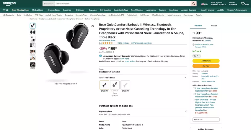 Słuchawki Bose QuietComfort Earbuds II na Amazon Cyber Monday: flagowe słuchawki TWS ze zniżką 80 USD