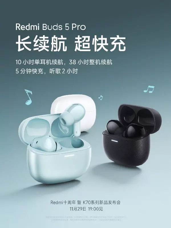 Redmi Buds 5 Pro zostaną wydane w Chinach 29 listopada.