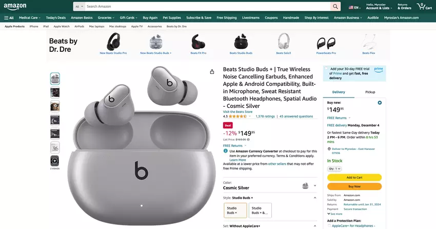 Beats Studio Buds+ na Amazon: Słuchawki TWS z ANC i do 36 godzin pracy na baterii za 149 USD (20 USD zniżki)