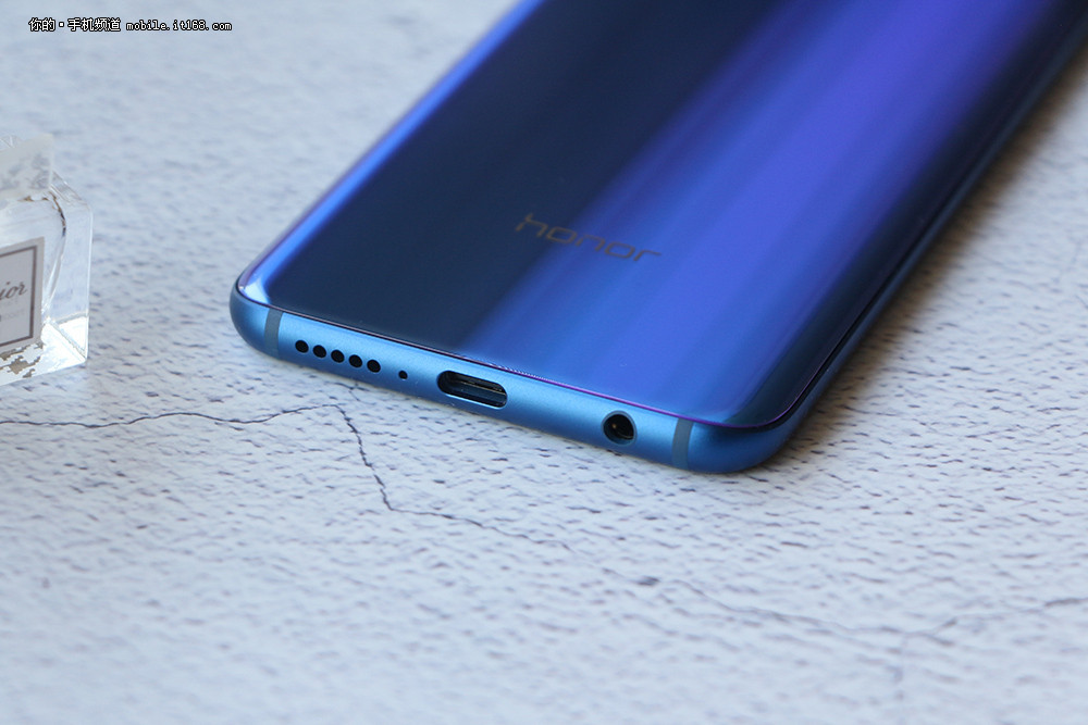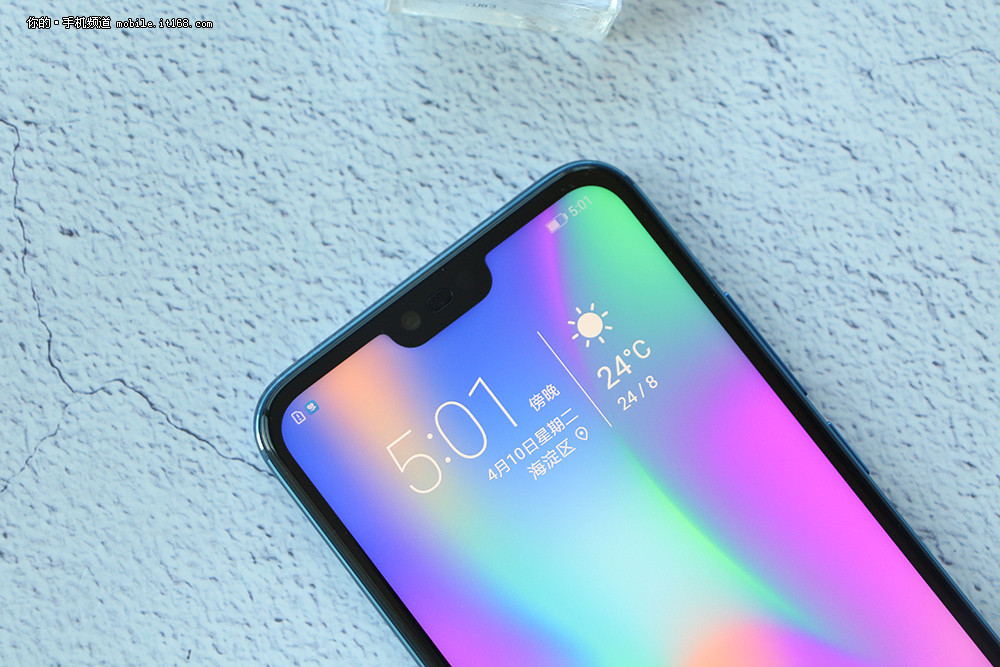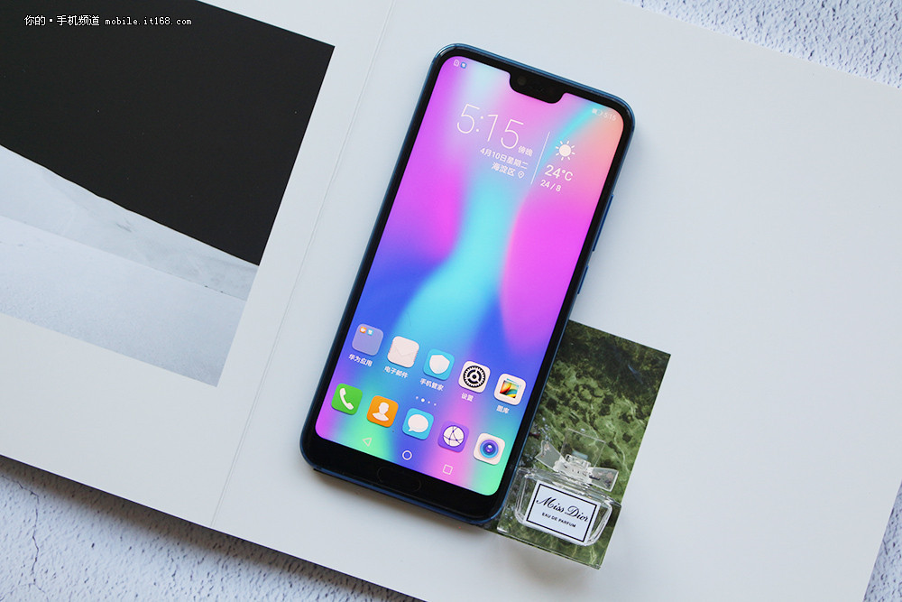 Honor 10 jest wyposażony w 5,84-calowy wyświetlacz IPS o rozdzielczości 2280x1080 pikseli i stosunku 19: 9. Jest wycięcie na przednią kamerę i głośnik, ale można go "ukryć", tworząc solidny czarny pasek na górze ekranu. W dolnej ramce wbudowany jest przycisk ze skanerem linii papilarnych. Zaokrąglony szklany panel tylny przyjemnie wlewa się w światło. Istnieją dwa "fantomowe" kolory z efektem gradientu - niebieski i fioletowy - oraz bardziej klasyczne szare i czarne warianty. Szkoda, że ​​gadżet nie ma ochrony przed wilgocią.