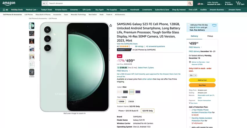 - Samsung Galaxy S23 FE, 256 GB - check price on amazon.99 check price on amazon99, check price on amazon.