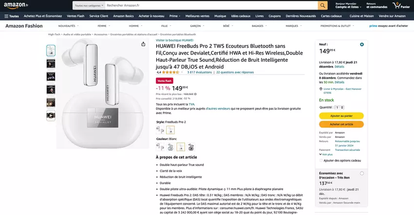 Huawei Freebuds Pro 2 na Amazon: flagowe słuchawki TWS za 149 euro (18,57 euro zniżki)