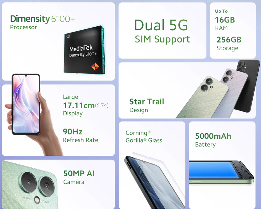 Redmi 13C 5G: wyświetlacz 90 Hz, układ MediaTek Dimensity 6100+, aparat 50 MP i bateria 5000 mAh za 130 USD