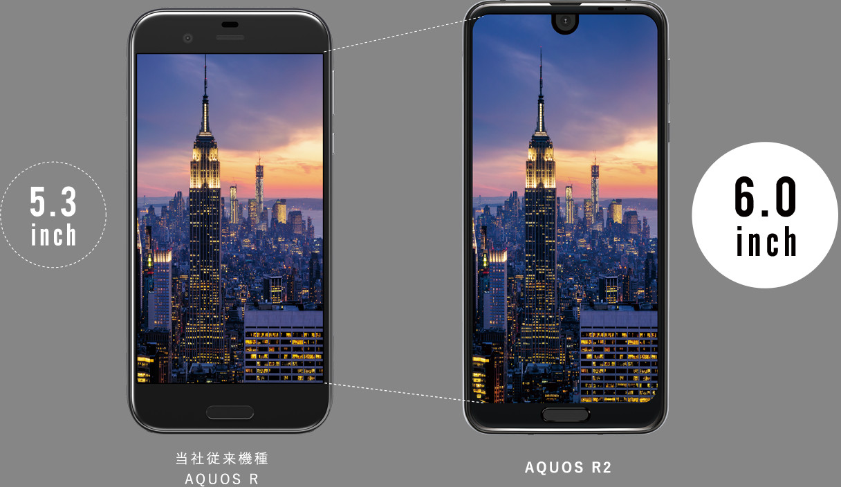 Sharp Aquos R2 jest wyposażony w 6-calowy ekran WQHD + (3040 x 1440 pikseli) o współczynniku kształtu 19: 9 i wycięcie dla przedniej kamery od góry. Jest to szybki panel IGZO o 25% szybszej odpowiedzi i obsłudze formatu HDR. Firma dodaje, że urządzenie jest porównywalne ze swoim 5,3-calowym poprzednikiem Aquos R. W flagowym procesorze Snapdragon 845, 4 GB RAM, wbudowane 64 GB z możliwością rozbudowy za pomocą karty microSD.