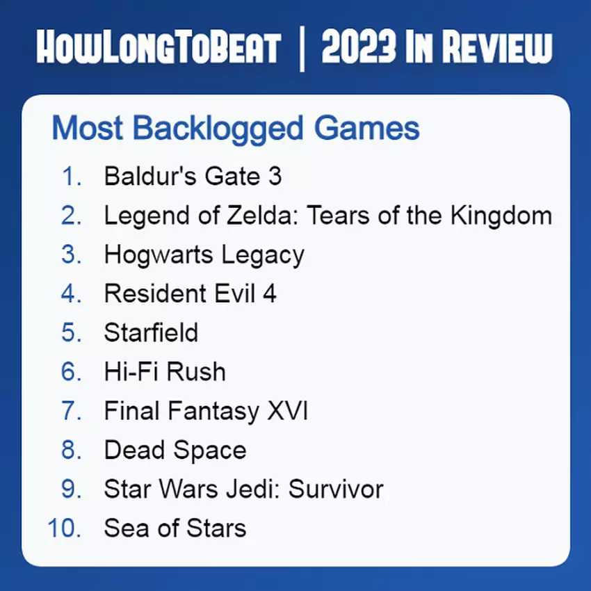 Portal HowLongToBeat zestawił 10 najlepszych gier, które gracze najczęściej odkładają do "długiej skrzynki" (Backlogged Games) w 2023 roku.