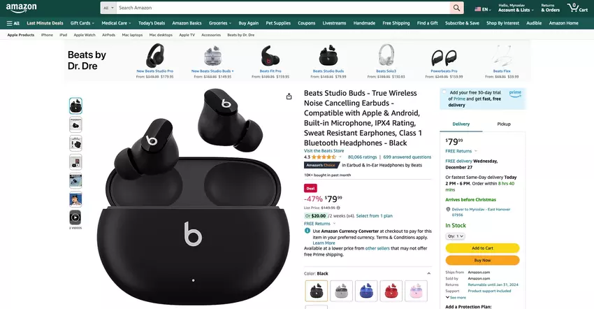 Oferta dnia: Beats Studio Buds z ANC można kupić na Amazonie ze zniżką 70 USD