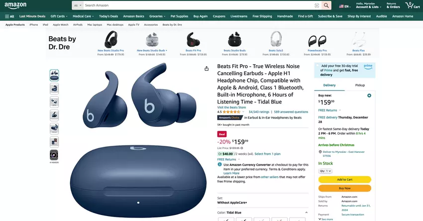 Beats Fit Pro na Amazon: Słuchawki TWS z ANC, ochroną IPX4 i chipem Apple H1 za 159,95 USD (40 USD zniżki)