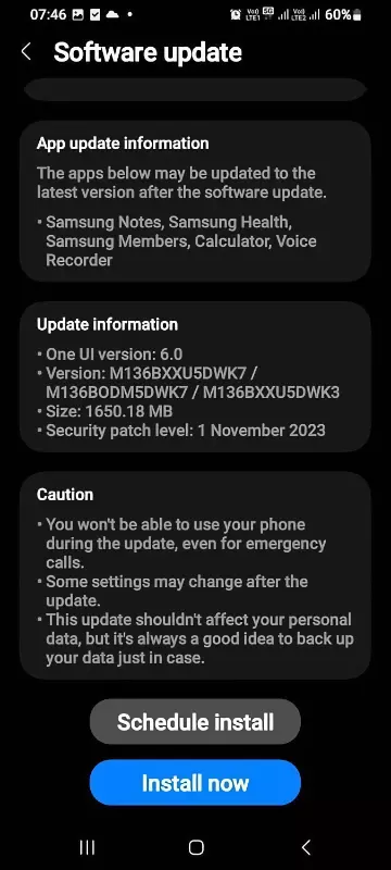 Mowa o modelu Galaxy M13 5G. Według SamMobile system jest nadal dostępny dla użytkowników urządzeń w Indiach. Firmware ma numer kompilacji M136BXXU5DWK7 i waży 1,65 GB. W innych regionach aktualizacja OTA pojawi się w niedalekiej przyszłości.