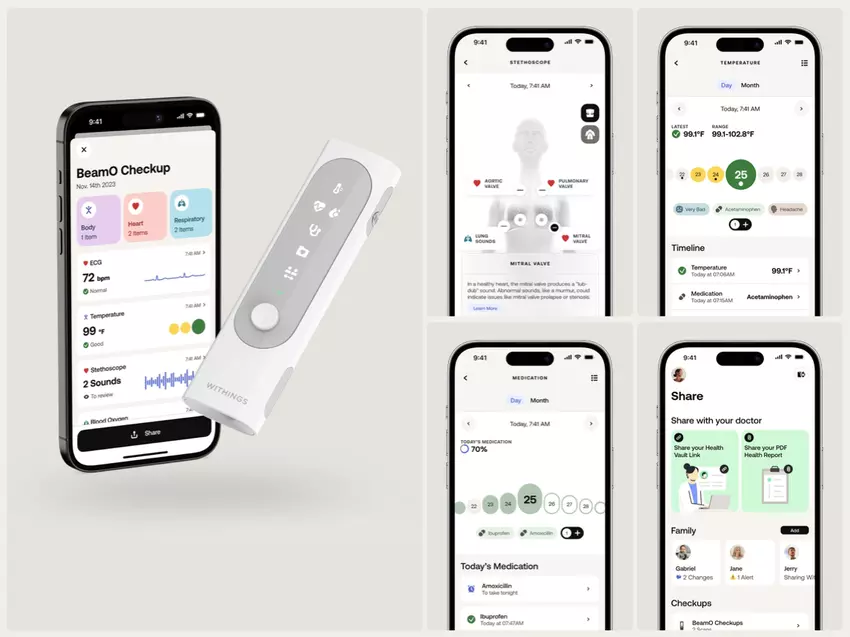 Withings twierdzi, że BeamO może wykonać badanie ciała w mniej niż minutę, ostrzegając użytkownika o gorączce, infekcji i możliwych problemach sercowo-naczyniowych. Takich jak na przykład migotanie przedsionków.