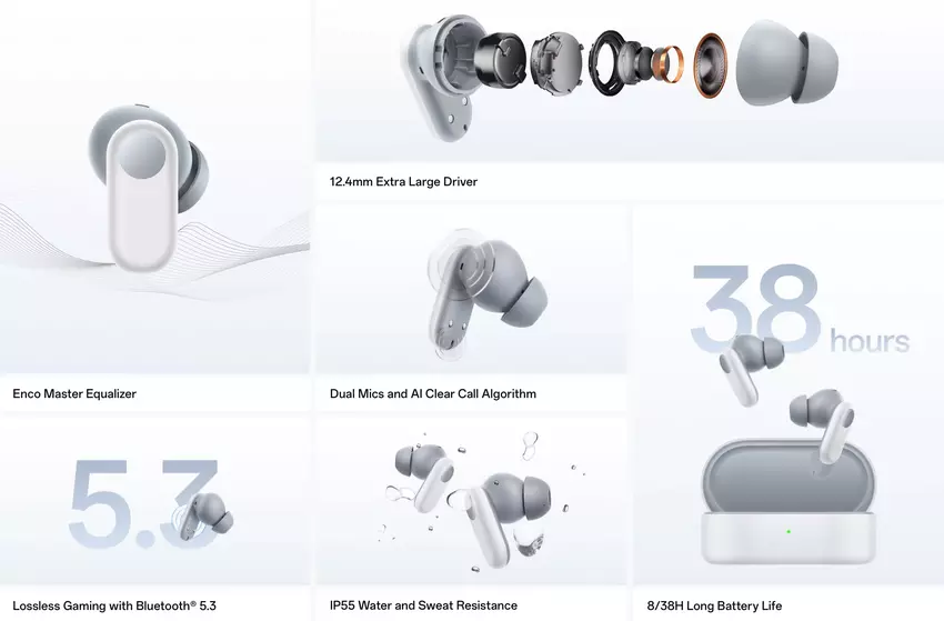 Model ma konstrukcję próżniową, stopień ochrony IP55 i przetworniki 12,4 mm. Słuchawki obsługują Dolby Atmos, a także Dirac Audio Tuner. Urządzenie posiada dwa mikrofony, które wykorzystują algorytmy sztucznej inteligencji do eliminacji obcych dźwięków podczas rozmów. Słuchawki obsługują Bluetooth 5.3 i mogą łączyć się z dwoma urządzeniami jednocześnie. Jeśli chodzi o żywotność baterii, będzie ona trwać do 8 godzin. Etui ładujące wydłuży ten czas do 38 godzin.