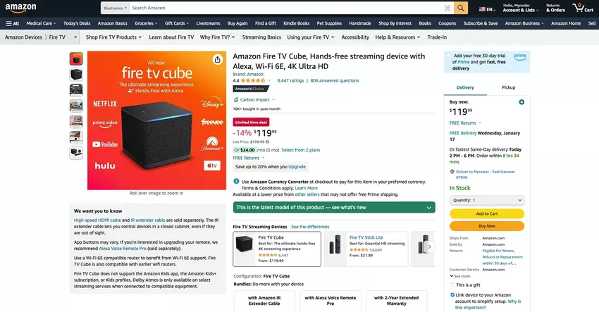 Amazon obniżył cenę odtwarzacza multimedialnego Fire TV Cube z obsługą 4K i Alexa