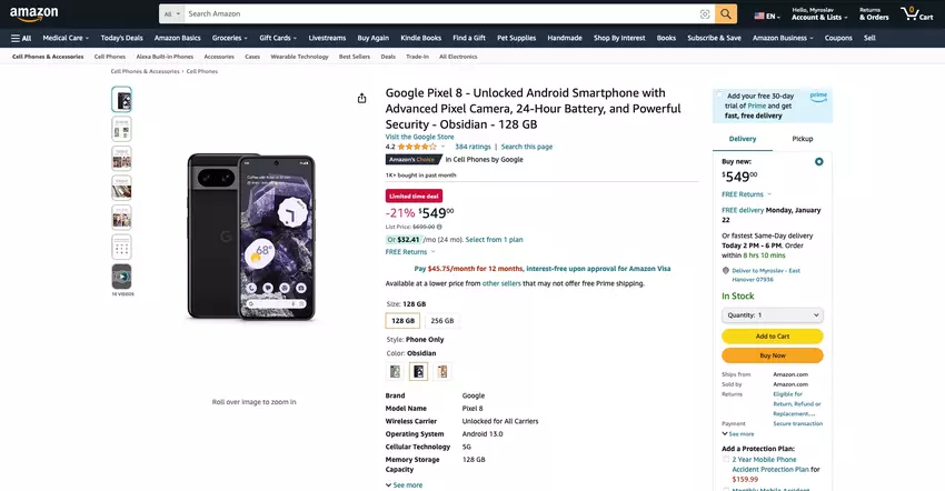 - Google Pixel 8, 128 GB - $577.64 $699.00, -17%