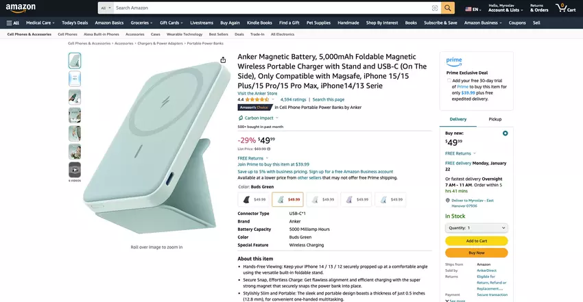 Zniżka wynosi 20 dolarów: Anker 622 5000 mAh Magnetic Battery z obsługą MagSafe dostępny na Amazon za 49 dolarów