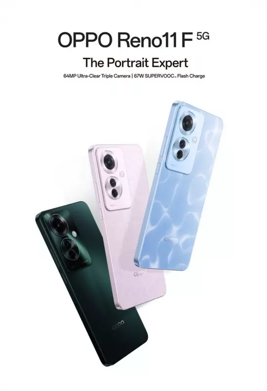 Według przecieków mówimy o modelu OPPO Reno 11F 5G. Nowość trafi na rynek w trzech kolorach: zielonym, różowym i niebieskim. Gadżet otrzyma wyświetlacz AMOLED o rozdzielczości FHD + i częstotliwości odświeżania 120 Hz. Nowość będzie wyposażona w skaner linii papilarnych pod ekranem i przedni aparat 32 MP. Główny otrzyma trzy czujniki o rozdzielczości 64 MP (OV64B) + 8 MP (IMX355) + 2 MP (makro).
