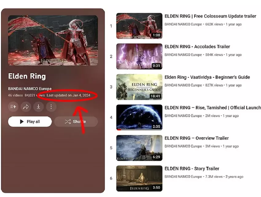 Użytkownicy sieci odkryli, że kilka kanałów Bandai Namco na YouTube zaktualizowało swoje playlisty o zwiastuny Elden Ring, choć żadne filmy nie zostały ostatnio opublikowane.