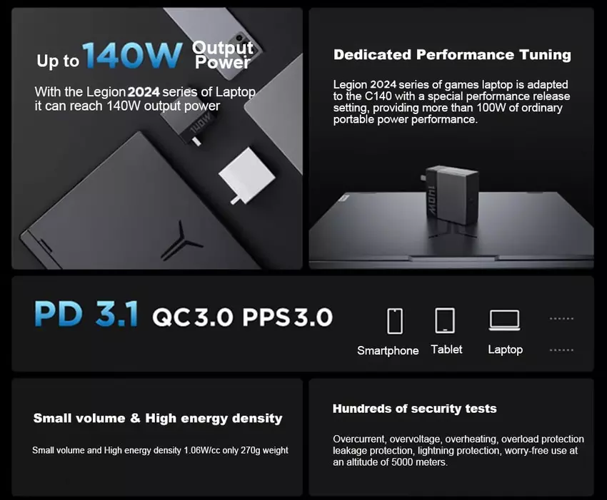 Firma Lenovo wprowadziła na rynek ładowarkę Legion C140 2024 GaN o mocy 140 W i cenie 30 USD.