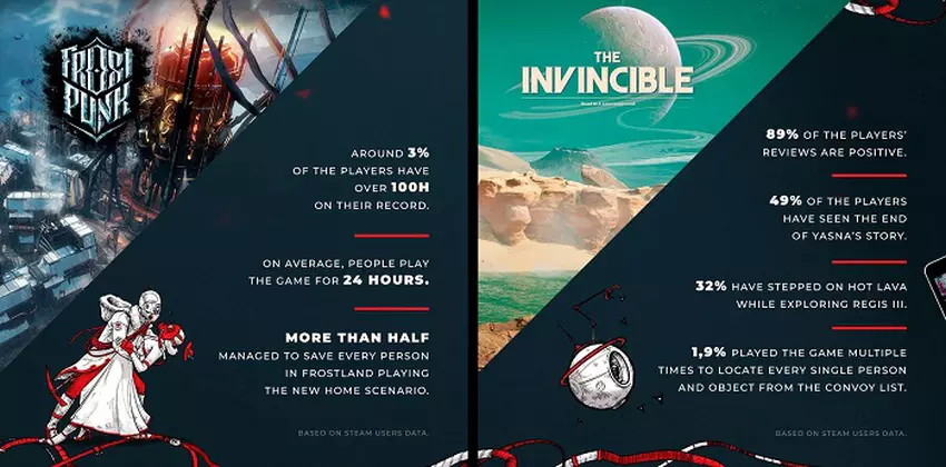 I tak, pierwsza część postapokaliptycznej strategii budowania miasta Frostpunk nadal przyciąga zainteresowanie graczy. Średnio gracze pozostają we Frostpunk przez około 24 godziny, a 3% graczy spędziło w nim ponad sto godzin. Warto zauważyć, że pomimo wysokiego poziomu trudności gry, ponad połowa użytkowników była w stanie uratować wszystkich mieszkańców swojego miasta.
