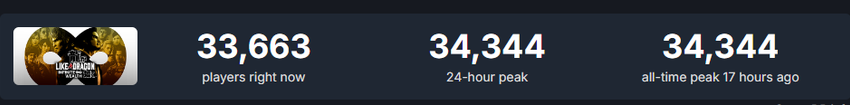 Według platformy, Like a Dragon: Infinite Wealth osiągnęło maksymalną liczbę jednoczesnych graczy - 34 344, co, nawiasem mówiąc, jest najwyższym szczytem jednoczesnych graczy wśród dotychczasowych gier z serii Like a Dragon / Yakuza. Poprzedni rekord należał do Like a Dragon Gaiden: The Man Who Erased His Name z 13 737 użytkownikami.