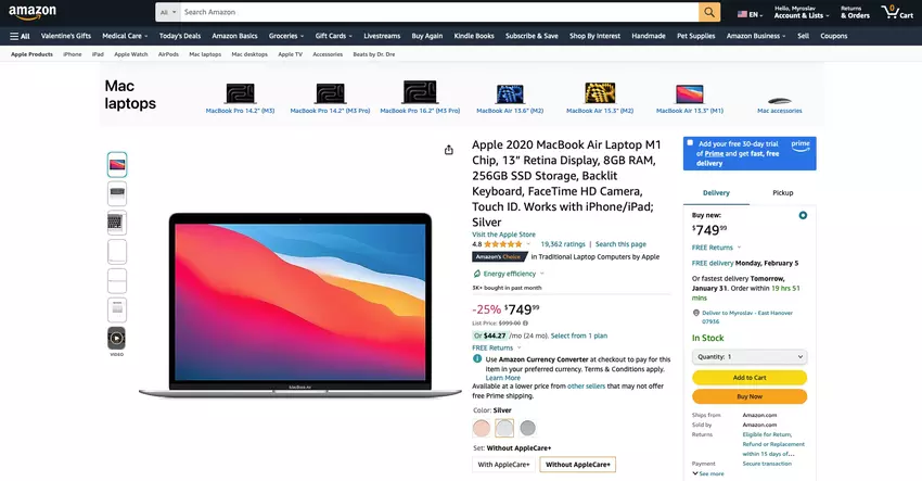 Najlepsza cena: MacBook Air z chipem M1 w sprzedaży na Amazon za mniej niż 800 USD
