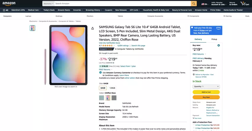 - Samsung Galaxy Tab S6 Lite, 64 GB - $252.44