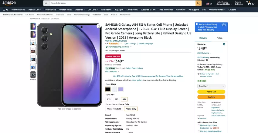 Nie tylko Galaxy Buds 2: Samsung Galaxy A54 5G jest również dostępny na Amazon w promocyjnej cenie