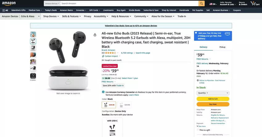 Amazon sprzedaje słuchawki Echo Buds (2023) z 20% rabatem