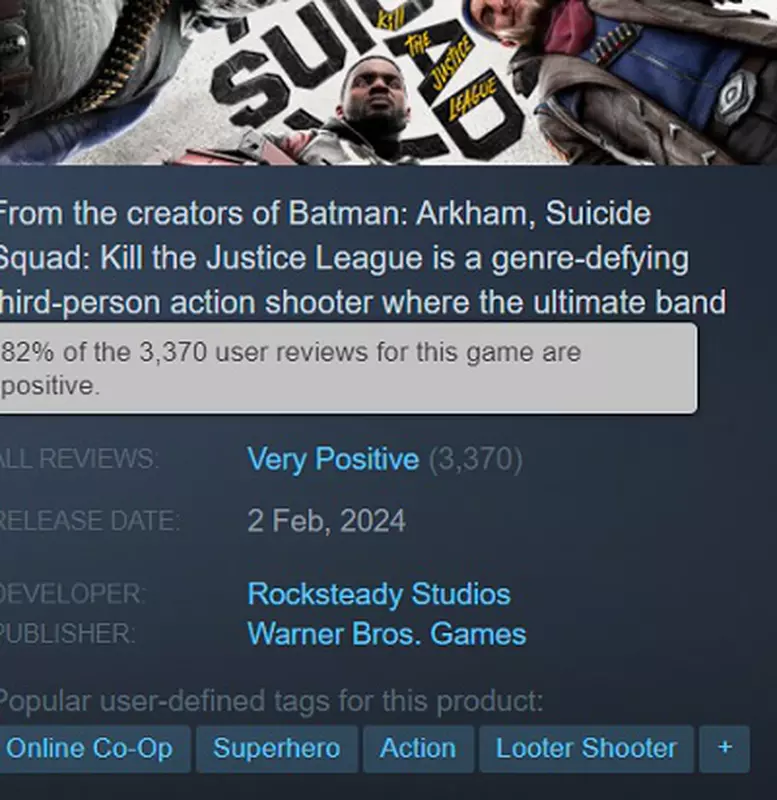 Co zaskakujące, Suicide Squad ma w większości pozytywne recenzje na Steamie.