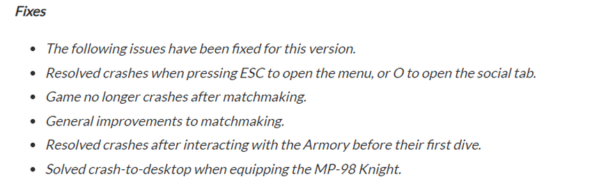 W oświadczeniu dołączonym do aktualizacji, twórcy zapewniają, że jest to dopiero pierwszy krok w kierunku rozwiązania problemów z grą, zwłaszcza jeśli chodzi o matchmaking, gdyż potrzebują więcej czasu na pełne rozwiązanie jego kwestii: