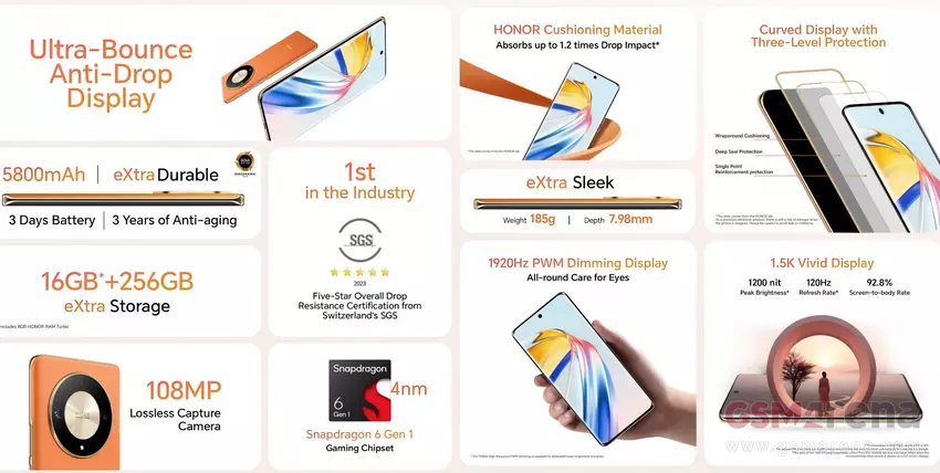 Gadżet działa na procesorze Snapdragon 6 Gen 1 w połączeniu z 8 GB pamięci RAM i 256 GB pamięci ROM. Nowość jest również wyposażona w baterię 5800 mAh z ładowaniem 35 W i ochroną IP53. Nowość ma 5G, Bluetooth 5.1, port USB-C i moduł NFC. Urządzenie jest wyposażone w system operacyjny Android 13 i powłokę MagicOS 7.2. Gadżet zostanie zaktualizowany do Androida 14 w najbliższej przyszłości.