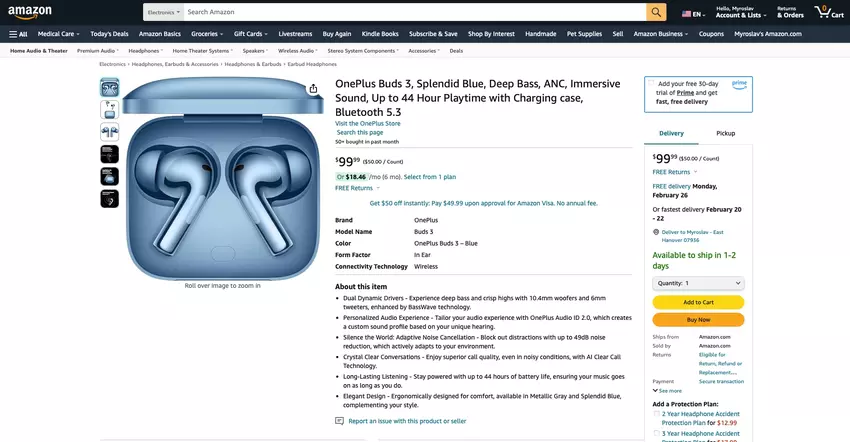 Model dostępny jest na Amazon w cenie $91.90 $99.99, -8%. Dostępny jest tylko jeden kolor - niebieski.