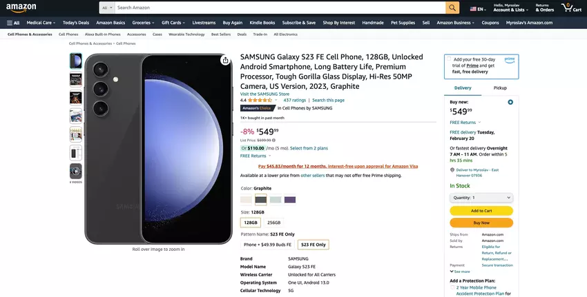 - Samsung Galaxy S23 FE, 128 GB - check price on amazon,99 dolarów check price on amazon