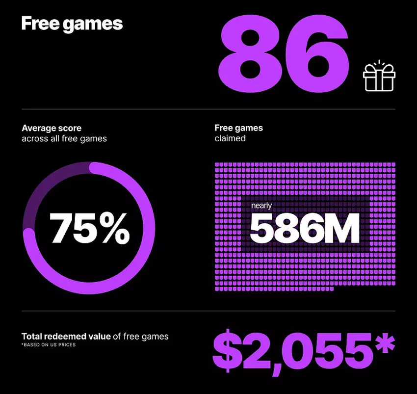Popularność EGS rośnie również dzięki cotygodniowym prezentom. W ubiegłym roku sklep rozdał 86 gier o wartości 2000 dolarów na użytkownika. Łącznie aktywowano 580 milionów kopii darmowych gier.