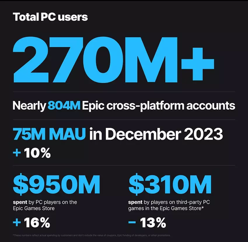 W 2023 r. liczba użytkowników EGS wzrosła do 270 mln, z 36,1 mln aktywnych użytkowników dziennie i 75 mln aktywnych użytkowników miesięcznie.