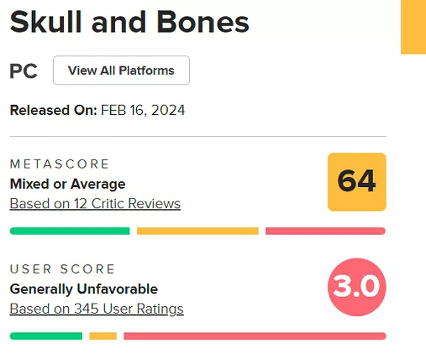Średnia ocena Skull & Bones w serwisie Metacritic wynosi zaledwie 3 punkty na 10 możliwych. Gracze nie są nieśmiali w swoich wypowiedziach, nazywając piracką grę akcji absolutną porażką.