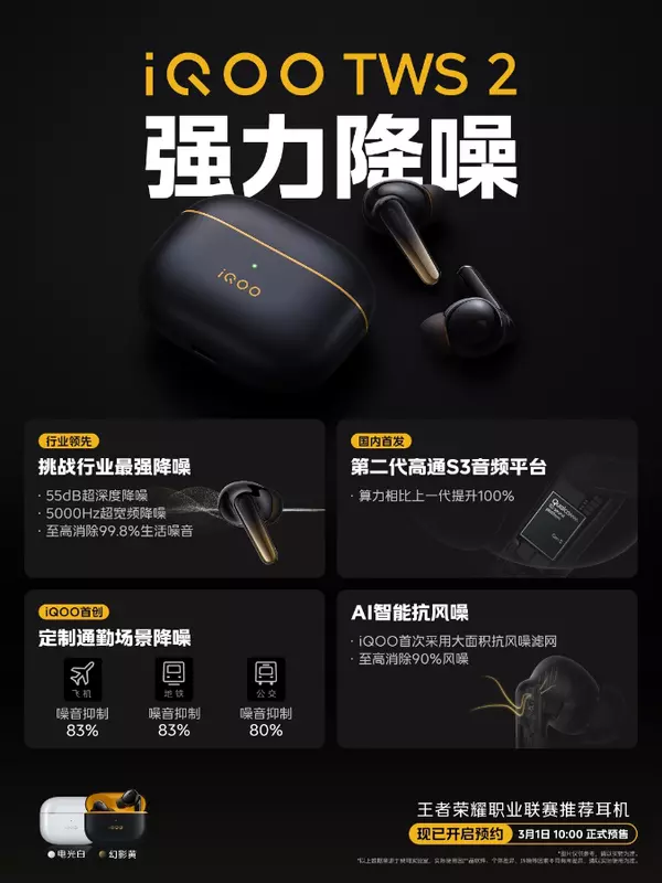 Nowość nosi nazwę iQOO TWS 2. Słuchawki otrzymały konstrukcję wewnątrzkanałową i procesor Snapdragon S3 Gen 2. Model obsługuje aktywny system redukcji szumów (do 55 dB). Ponadto urządzenie posiada funkcję odpowiedzialną za eliminację szumów podczas rozmów. iQOO TWS 2 posiadają tryb gamingowy (opóźnienie dźwięku wynosi 44 ms). Niestety, autonomii słuchawek producent jeszcze nie ujawnił.