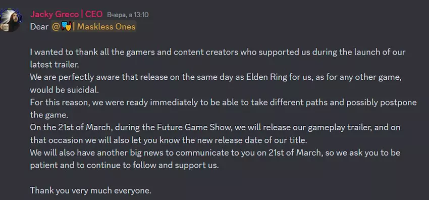 Włoskie studio Jyamma Games planowało wydać swoją grę akcji Enotria: The Last Song 21 czerwca 2024 roku. Pojawiła się jednak nieprzewidziana sytuacja: studio FromSoftware zaplanowało premierę dużego dodatku Shadow of the Erdtree do Elden Ring na ten sam dzień.