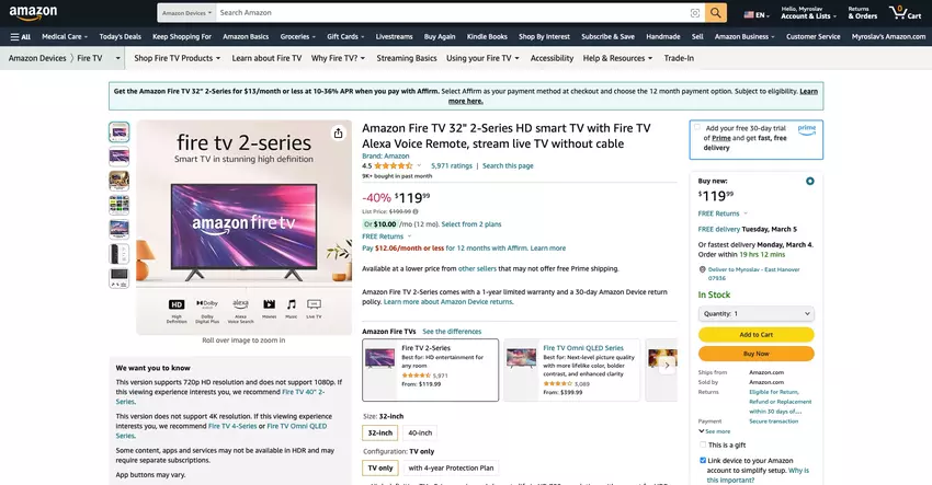 Jest to model z 32-calowym ekranem. Urządzenie kosztuje check price on amazon- check price on amazon.