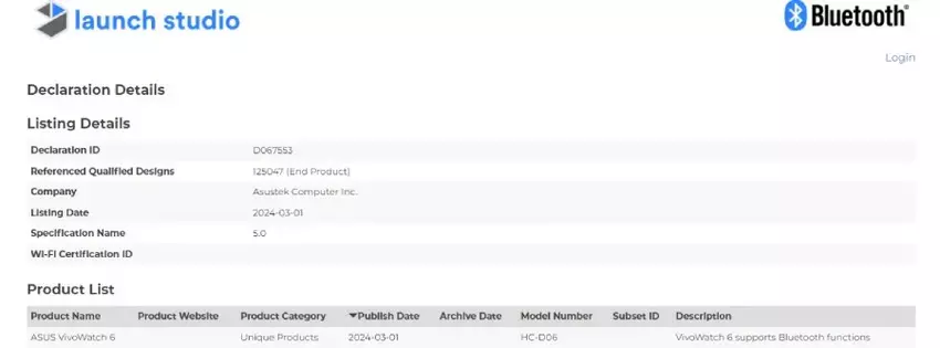 Nowy smartwatch od Asusa został zauważony w bazie danych Bluetooth SIG pod nazwą "VivoWatch 6" i numerem modelu HC-D06, co oznacza, że premiera zegarka powinna nastąpić wkrótce.