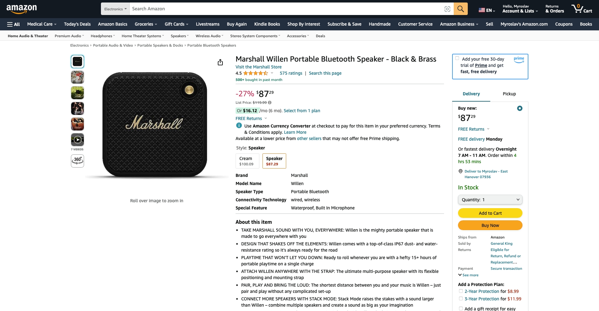 Marshall obniżył cenę doskonałego kompaktowego głośnika bezprzewodowego Willen.