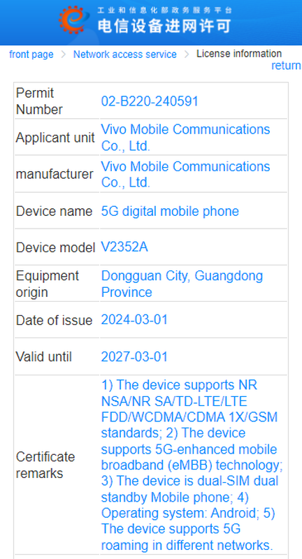 Smartfon o numerze modelu V2352A pojawił się w bazie danych chińskiej agencji certyfikującej MIIT. Oznacza to, że gadżet jest już gotowy do prezentacji. Najprawdopodobniej zostanie pokazany w kwietniu.